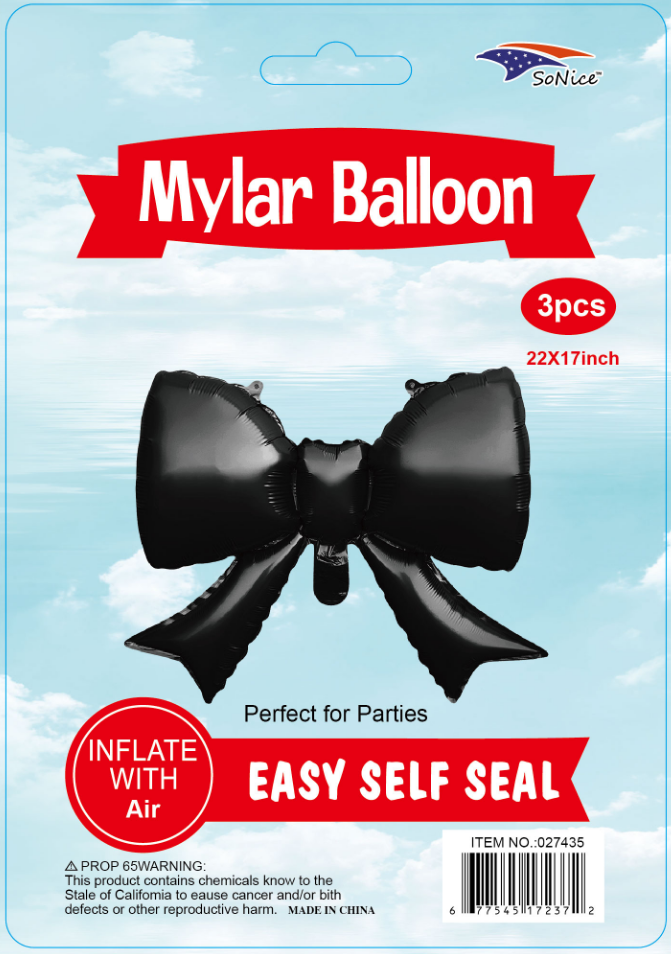 22″ Mylar Balloon Bow 3pcs Black