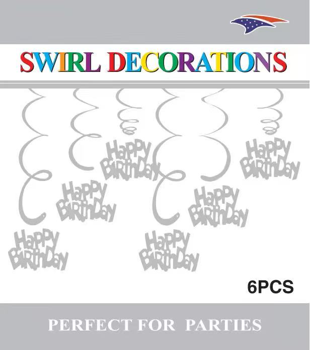 Be the first to review “Themed Decoration Swirls 6 CT, HBD silver”